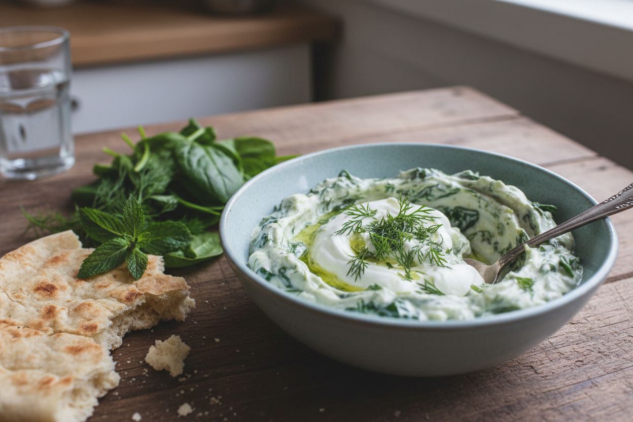 Ce borani persan aux épinards est un vrai petit trésor de la cuisine iranienne. Cette entrée crémeuse et parfumée te transporte directement en Perse avec ses saveurs authentiques. Un mélange gourmand d’épinards, de yaourt et d’herbes fraîches qui va éveiller tes papilles.
