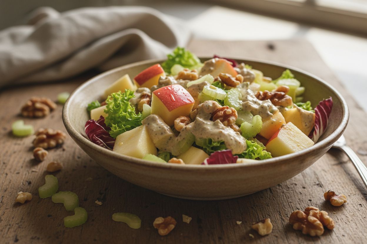 Le secret d’une salade Waldorf végétarienne réussie, c’est le contraste des textures. Tu veux du croquant avec les pommes et le céleri, du moelleux avec les raisins, et de l’onctuosité avec la sauce crémeuse.
