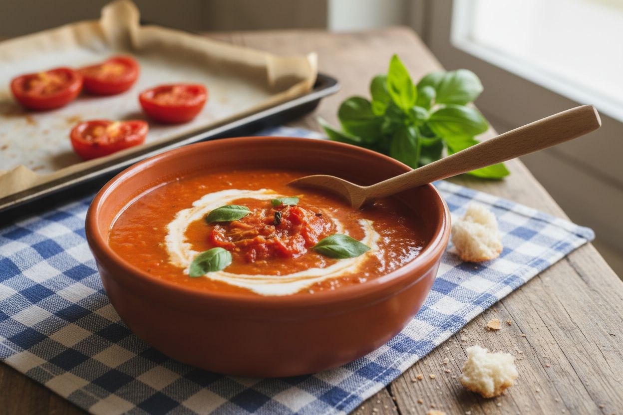 Soupe tomate rôtie basilic Recette provençale réconfortante