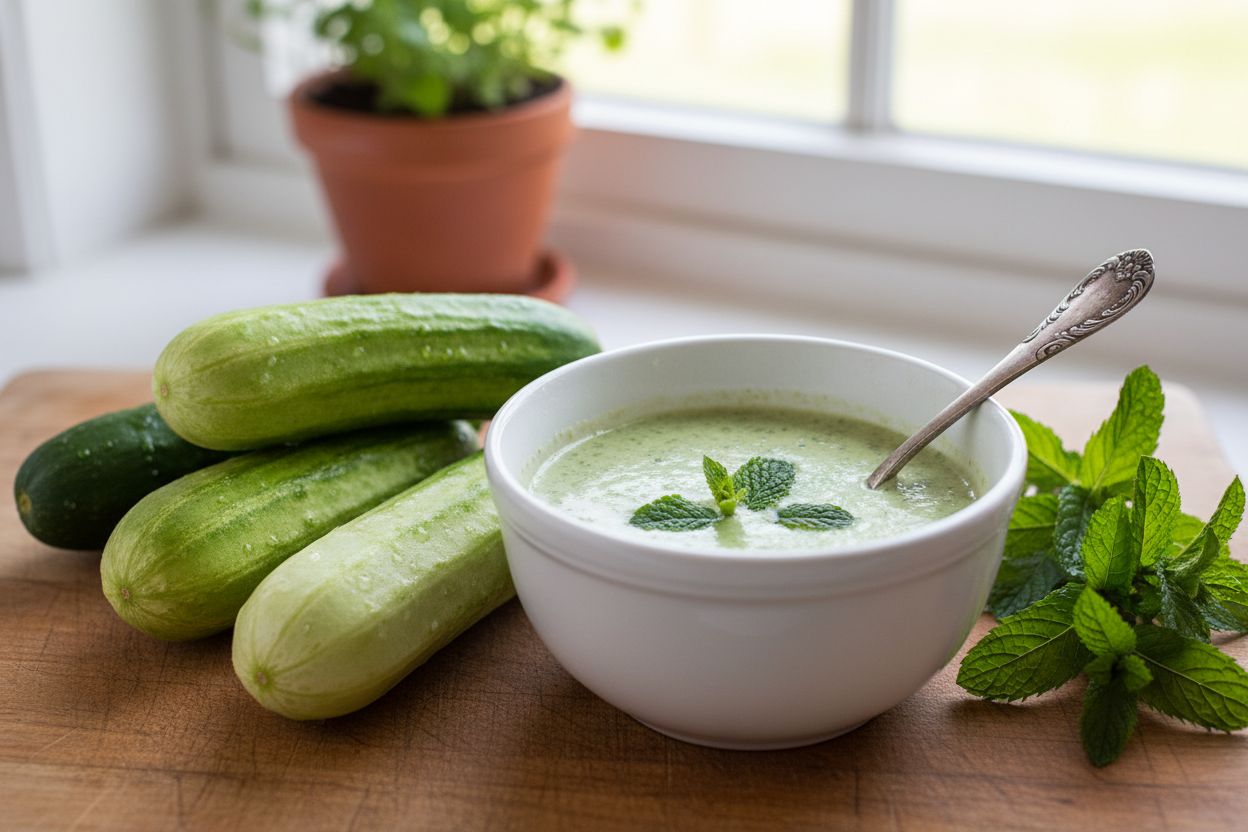Cette soupe fraîche au concombre et menthe me rappelle les chaudes journées d’été où le soleil de Provence réchauffait notre petit jardin. Je vous transmets cette recette délicate qui parfume la cuisine d’un souffle de fraîcheur, idéale quand la chaleur nous accable et que l’on cherche un réconfort tout en douceur.