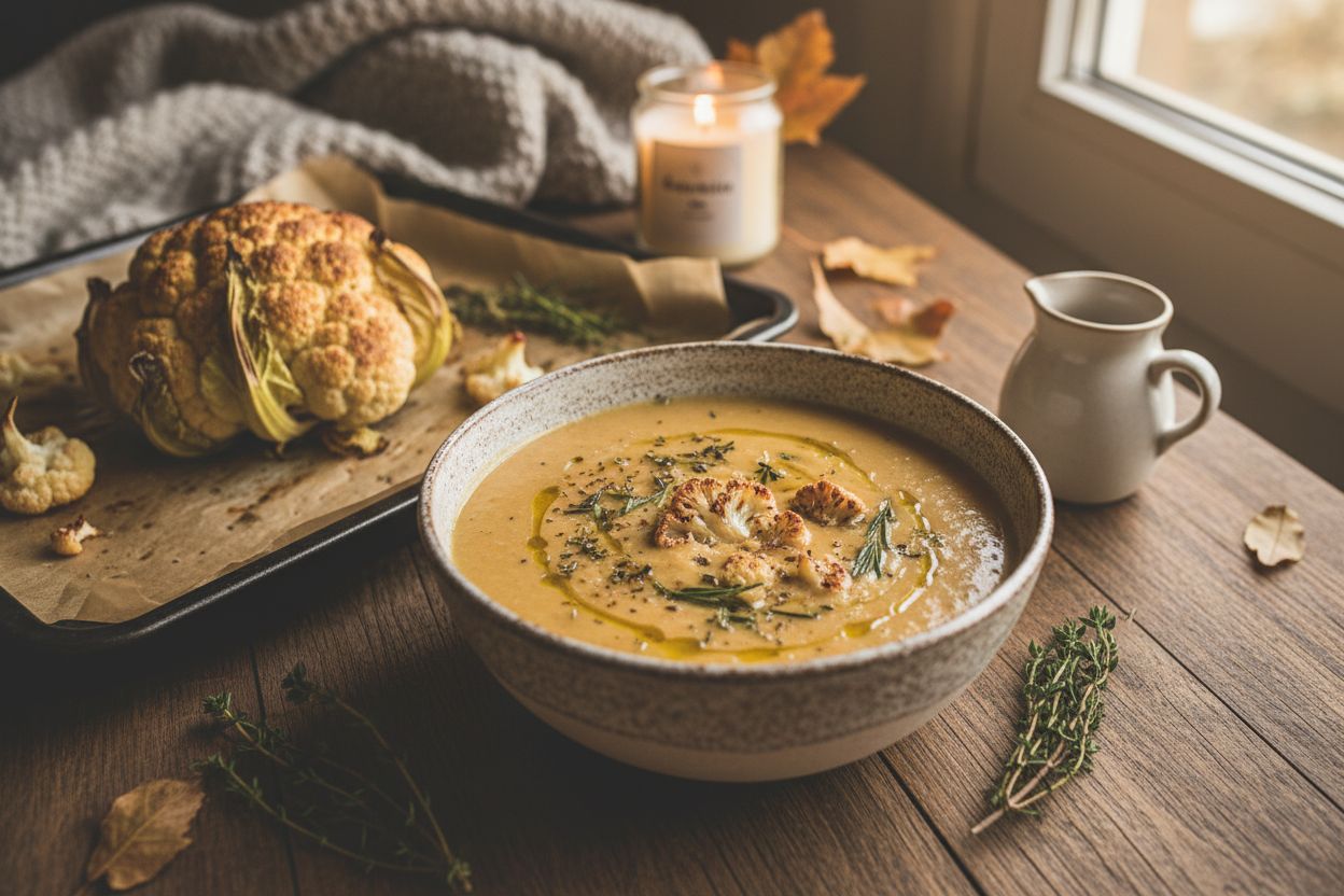 Ce velouté de chou-fleur rôti se prête à merveille aux variations saisonnières. En automne, ajoutez quelques châtaignes grillées pour une note boisée. L’hiver venu, une pointe de curry doux réchauffera les papilles comme un rayon de soleil retrouvé.