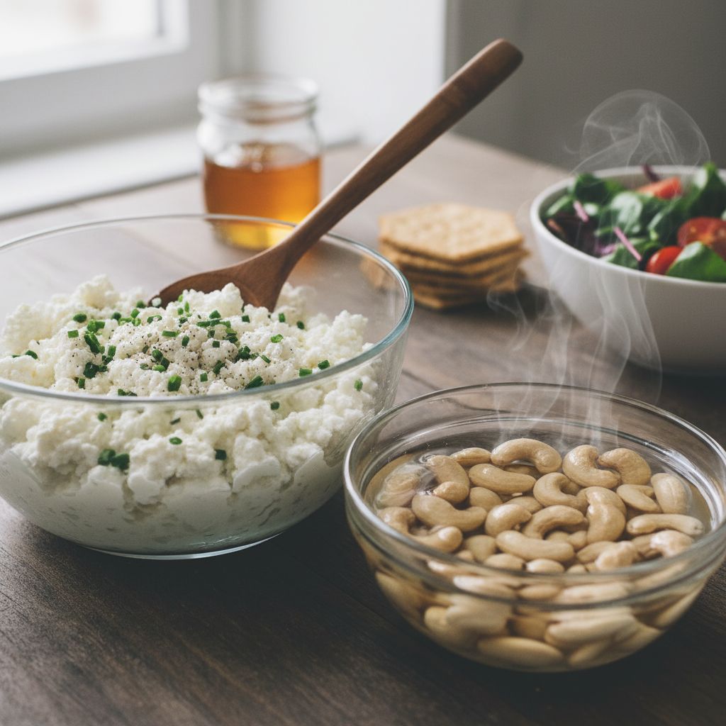 Pour une version épicée, incorpore une pincée de paprika fumé ou quelques flocons de piment. Cette variante se marie parfaitement avec des plats comme le chili sin carne où ton cottage cheese végétal apporte une fraîcheur contrastante.