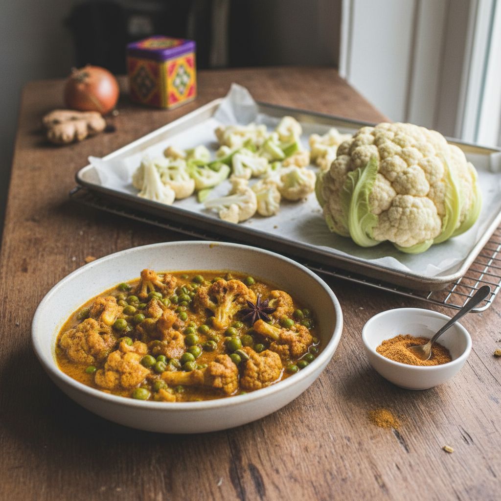 Ce curry de chou-fleur rôti va te réconcilier avec les épices si tu pensais que c’était trop compliqué. Avec son masala rapide et ses petits pois croquants, c’est le plat parfait quand tu veux du gourmand sans passer des heures en cuisine. Le chou-fleur devient moelleux à souhait après son passage au four.