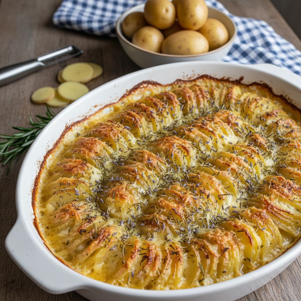 Ce gratin dauphinois revisité sans viande vous transportera dans les souvenirs de nos cuisines provençales où le parfum des herbes du soleil embaumait toute la maison. Cette version végétarienne garde toute l’authenticité du plat traditionnel, enrichie d’aromates qui éveilleront vos sens et réchaufferont votre cœur comme autrefois.